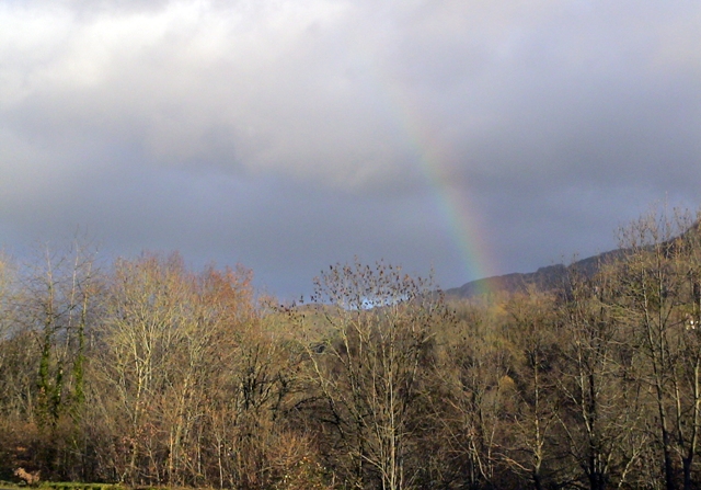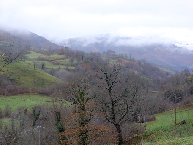 Es curioso que una vez cruzado el viaducto el paisaje hace un cambio bastante súbito, rodeándonos de extensos prados de verde intenso, mientras las nubes van cubriendo las zonas medias de las montañas y los bosques son cada vez más densos con los arboles sin apenas hojas a causa de la inminente entrada del invierno.