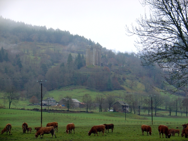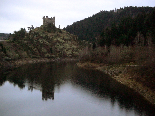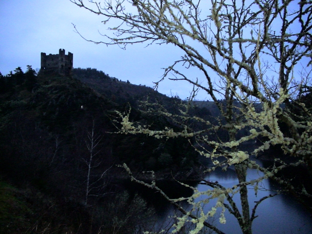 Siguiente destino, el castillo o «Château d’alleuze«, en apenas un cuarto de hora llegamos al mirador del castillo, en esta ocasión se trata de un castillo en ruinas, construido en el siglo XIII , como está ubicado en la cima de una colina con el río de Alleuze de fondo, las vistas son fantásticas, será por eso que la guía verde Michelin dicen de él que, «apenas puede haber otro lugar de belleza en Auvernia tan romántico como el emplazamiento de este castillo».
