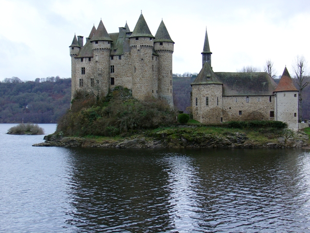 Por fin un castillo algo diferente, el Château de Val cerca de la población de Lanobre, fue construido en el siglo XV, sobre una roca de 30 metros de altura, con vistas al valle de Haute-Dordogne y a orillas del lago de Bort-les-Orgues, es como sacado de una postal, al alejarnos un poco para hacer las fotos, se reflejan sus torreones en el agua del lago quedando una imagen preciosa. el precio de la visita es de 6,5€. Más info : http://www.chateau-de-val.com/#info .