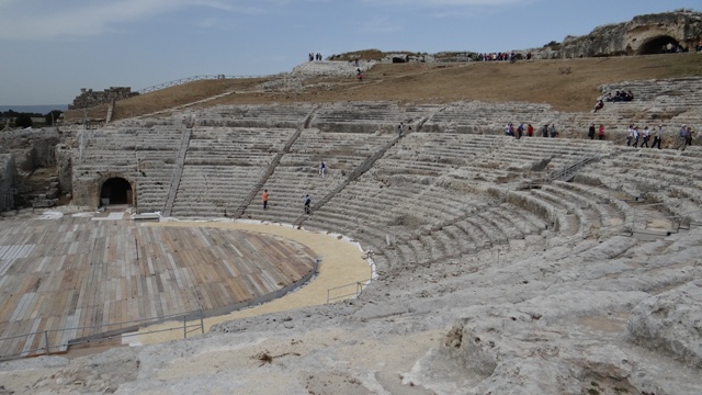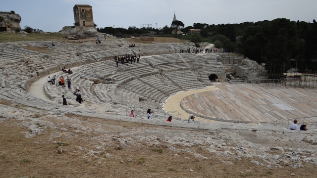 Pasamos frente a la gruta de Cordari, mientras íbamos recorriendo toda la Latomia , admirando los trabajos en la piedra que realizaron los prisioneros, cerca de allí está la que dicen es la tumba de Arquímedes, que solo pudimos ver desde fuera ya que la tenían cerrada al público, finalizamos la visita a las ruinas con en el anfiteatro romano.
