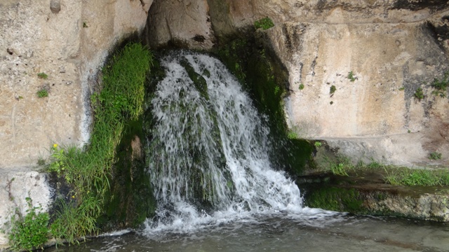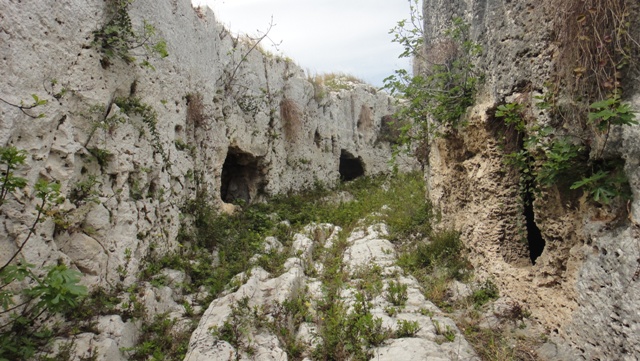 En la parte alta, detrás del teatro nos encontramos con varias tumbas escavadas en la roca y la Grotta di Ninfeo un manantial de agua fresca, donde los actores se reunían antes de empezar la obra, desde donde se podía ver la panorámica de la ciudad.