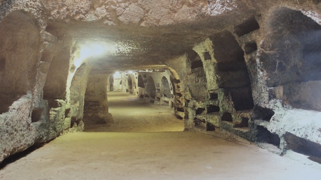 Visitamos la basílica de San Juan Bautista y las «Catacombe di San Giovanni«, el precio de la entrada es de 8 €, apenas tuvimos que esperar para el inicio de la visita guiada, la catacumbas se componen de un pasillo central llamado «Decumanus Maximus» que se ramifica en diez galerías secundarias llamadas «Cardines», una interesante y refrescante visita.