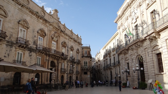 Fuimos descendiendo hacia la Isla de Ortigia paseando por las calles de la ciudad, donde aprovechamos para almorzar en uno de sus restaurantes, ya que tras tanta visita nos había entrado hambre.