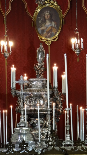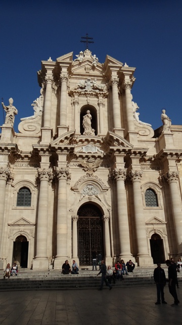 Fuimos recorriendo sus encantadoras calles rodeadas de interesantes edificios, hasta la llegar a la Fontana di Diana, continuando a hacia la piazza Duomo, donde visitamos la catedral o «Cattedrale metropolitana della Natività di Maria Santissima» construida aprovechando la ruinas del templo de Atenea, en su interior pudimos ver algunas columnas dóricas que aún sostienen el techo, en esta plaza se concentran varios de los edificios más interesantes de la ciudad, como el ayuntamiento o palacio Senatoriale, la Iglesia de Santa Lucía alla Badia, el Palacio Beneventano del Bosco, el palacio arzobispal y la ya mencionada catedral.