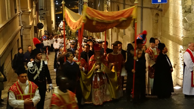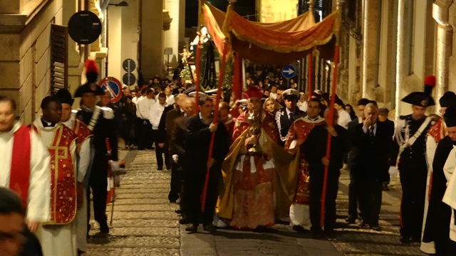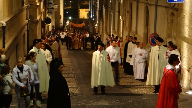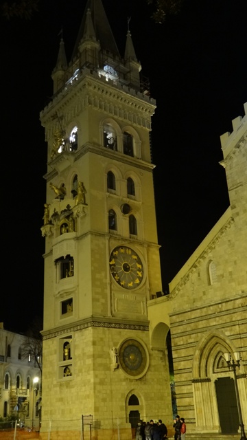 Recorrimos todo su interesante casco histórico, perfectamente iluminado, sobretodo la calle Vittorio Emanuele, donde en su kilómetro de longitud disfrutamos de auténticas maravillas arquitectónicas del barroco, terminando la calle en la «Porta Reale», construida para recibir la visita del rey Fernando II de Borbón que ocupó el trono de las dos Sicilias desde 1830 hasta su muerte en 1859.