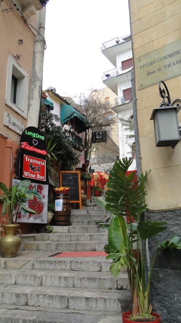 Regresamos al centro de la población para pasear un poco más por sus estrechas calles, un poco más tarde como iba llegando la hora de comer decidimos descender hacia Mazzarò con el teleférico para comer.