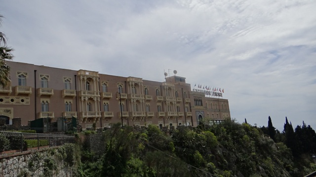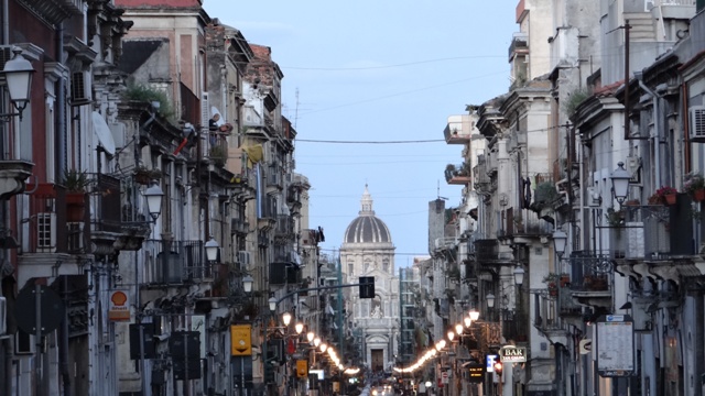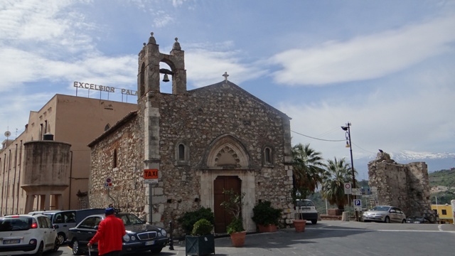 La calle termina en la «porta di Catania«, al cruzarla, nos encontramos con la iglesia de San Antonio, situada al lado del impresionante Hotel Excelsior Palace, un edificio de grandes dimensiones en comparación con los demás de la población que destaca sobremanera.