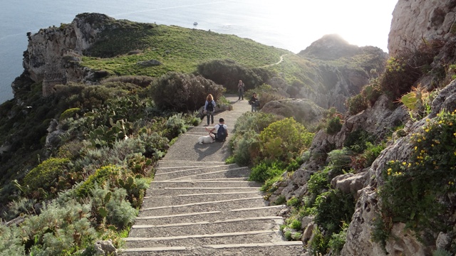 Tras la comida cogimos el panda y nos dirigimos hacia la península de el «Capo di Milazzo», deteniéndonos por el camino en algunos miradores para fotografiar el paisaje. Una vez en el cabo Milazzo, aparcamos el coche y nos fuimos andando hacia el faro llamado «Lucifero Baron of S. Nicolò«, es un paseo relativamente corto entre arboles y cultivos.