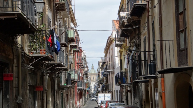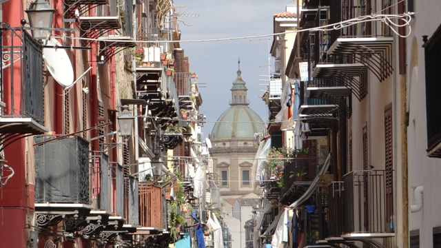 Paseamos por el barrio de la Albergheria, en sus calles se respira el auténtico ambiente siciliano, encontrándonos con algunas barbacoas improvisadas en mitad de la calle que compartían algunos vecinos, pasamos frente a la «Torre di San Nicolò di Bari«, la iglesia del Carmine Maggiore, la del Gesù, la Concatedral de Santa María del Almirante, la verdad es que iglesias no les faltan en Palermo, en una misma calle podíamos encontrar tres de seguidas.