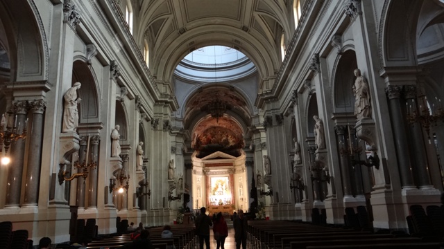 Una vez conseguimos aparcar, nos dirigimos hacia la plaza del Duomo donde se concentran la mayoría de edificios más importantes de la ciudad, en primer lugar nos encontramos con la iglesia de la Abadía de Santa Agatha situada justo antes de la plaza, al acceder a su interior coincidió que en aquellos momentos estaban haciendo una misa.