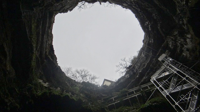 Al acercarnos a la entrada, tuvimos la primera vista del inmenso agujero con abundante vegetación en sus paredes de piedra, la primera impresión es espectacular.