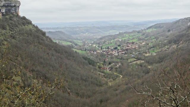 Lo primero que hicimos fue una parada en el mirador, que ofrece una espectacular vista sobre el valle del Lot con el pueblo sobre la roca en primer plano.