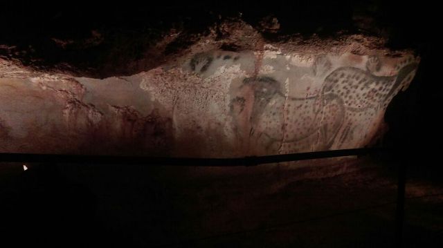 El recorrido se hace con un tren eléctrico, que nos llevó al interior de la gruta, pudiendo ver durante el recorrido gran variedad de pinturas rupestres, mamuts, bisontes, caballos e impresiones de sus manos. Según nos informaron has más de 250 figuras de animales con una antigüedad superior a 150 siglos, una visita muy recomendable si algún visitáis la región.