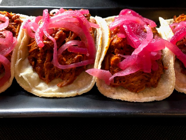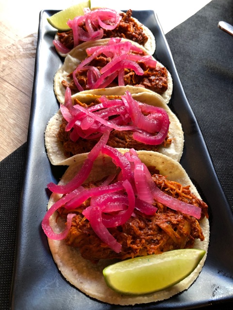 De platos principales elegimos los Tacos de cochinita pibil, también muy sabroso, con una carne adobada deliciosa, se notaba una excelente elaboración en la cocción de la carne.