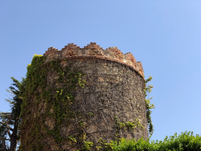 Retrocedimos hasta el Hotel Colón que es donde se encuentra el paso subterráneo que salva la vía del tren para dirigirnos al centro del casco antiguo. Subimos hasta la iglesia de Santa María, construida en el año 1805 sobre las ruinas de una antigua iglesia del siglo XIII, pasando frente a la masía de Can Milans de Caldes, que contiene elementos góticos y está fortificada, como estaban bastante cerca en nuestro recorrido vimos las torres de defensa del siglo XVI.