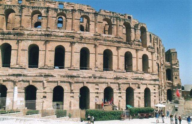 La primera visita del día fue el Anfiteatro de El Djem, también llamado coliseo de Thysdrus, considerado el mayor anfiteatro de África, fue construido en el año 238 d.C.. Está en bastante buen estado de conservación, por algo es el monumento romano más conocido del país.