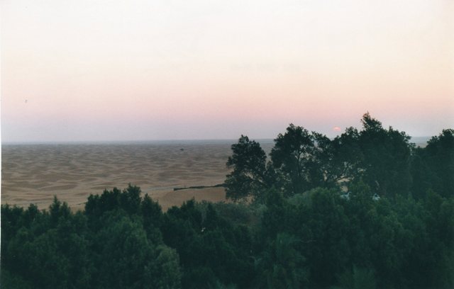 Nos despertamos muy temprano para poder ver el amanecer desde la torre de vigía, o sea que a las 5 de la mañana ya estábamos en lo alto de la torre, el amanecer fue espectacular, en esta ocasión no nos pasó como en Marruecos donde habian nubes bajas, aquí si que pudimos ver la salida del sol al completo, con sus diferentes tonos de color al iluminar las dunas, curiosamente fuimos los únicos que nos levantamos para ver el amanecer.