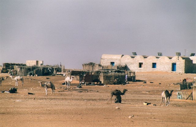 El lugar era de lo más bucólico, un oasis repleto de palmeras con un edifico tradicional de obra y una torre vigía rodeada de jaimas, eso sí con todas las comodidades, ¡¡wc y aire acondicionado!!, situado en mitad de un mar de dunas junto al parque nacional Jebil, además disponía de una gran piscina, que más se puede pedir.