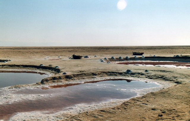 Nos detuvimos en mitad del lago para poder observar la inmensa llanura completamente plana del «lago», aunque se podría pensar que podía ser parecido al salar de Uyuni, no es así, debido a la arena que arrastra el viento, que hace desaparecer el color blanco de la sal, tiñéndolo todo de color ocre.