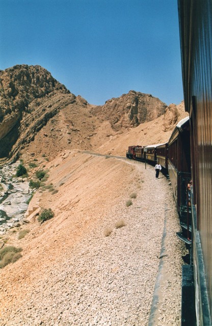 Nos desplazamos con los 4×4 hasta Metlaoui o Al-Mitlawi, donde nos embarcamos en el colorido tren Lézard Rouge que significa lagarto rojo, para hacer un recorrido por los hermosos valles del desierto y del cañón de Seldja, el tren fue construido en Francia a principios del siglo XX para el Bey de Túnez, usándose en sus inicios para transportar el fosfato de las minas descubiertas que había en esa zona.