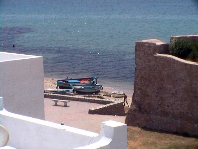 Dedicamos este primer día al completo en la ciudad para visitarla. Tras el desayuno y un relajante baño en la playa del hotel, nos tomamos el día con bastante tranquilidad, salimos hacia la playa de Hammamet, situada junto a la medina amurallada, paseamos por los alrededores de la muralla observando el mar y el vaivén de las embarcaciones que pasaban frente a nosotros, en algunas de ellas tenían instaladas barbacoas donde empezaban a preparar un seductor almuerzo a base de pescado fresco.