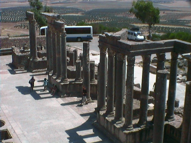Nos desplazamos hasta el yacimiento arqueológico de Dougga o Thugga, la que dicen es una de las ciudades antiguas mejor conservadas del norte de África, fue declarada Patrimonio de la Humanidad por la Unesco en el año 1997. El trayecto desde Thuburbo tuvo una duración de unas dos horas aproximadamente, una vez llegamos a el yacimiento, visitamos las ruinas de esta antigua ciudad de más de 17 siglos de historia, construida sobre una colina a 571 m de altitud, fue la primera capital del reino númida. En ella se encuentran vestigios de varias culturas como la númida, púnica, helenística y romana.
