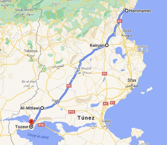 Siguiente destino, la ciudad de Tozeur, capital de la gobernación del mismo nombre, situada muy cerca de la frontera con Argelia y considerado el oasis más grande de Túnez.
