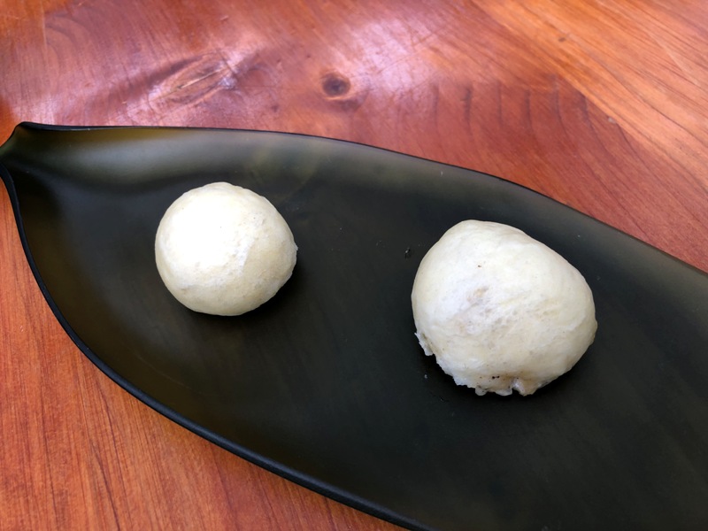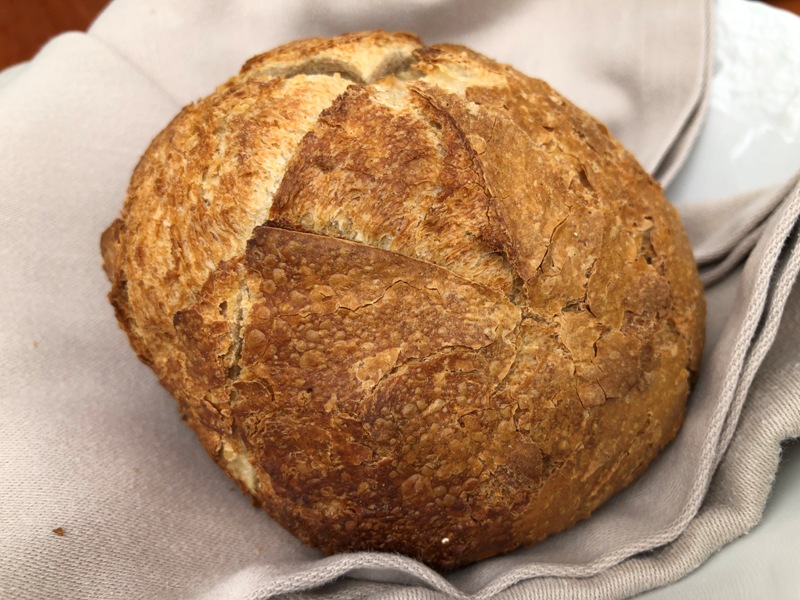 Iniciamos nuestro viaje gastronómico con un pan redondo, untándolo con mantequilla a la olivada para ir haciendo boca.