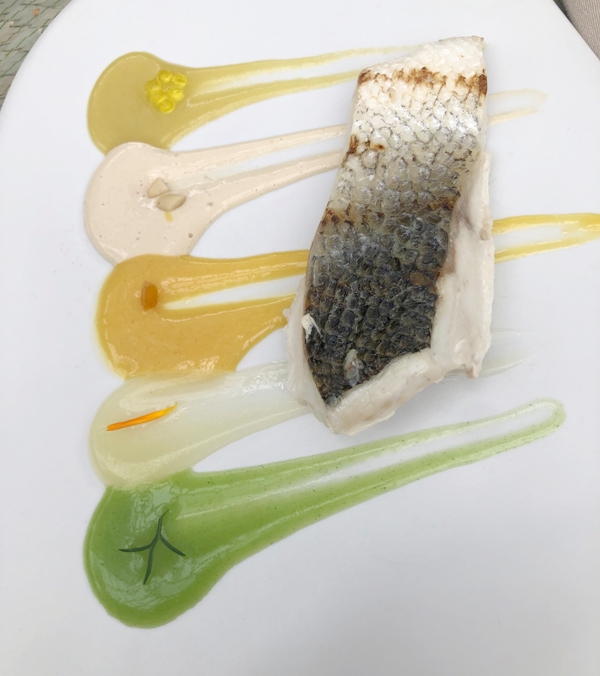 Lubina con sabores del mediterráneo, bergamota, hinojo , naranja, piñones y aceitunas verdes.(2006)
