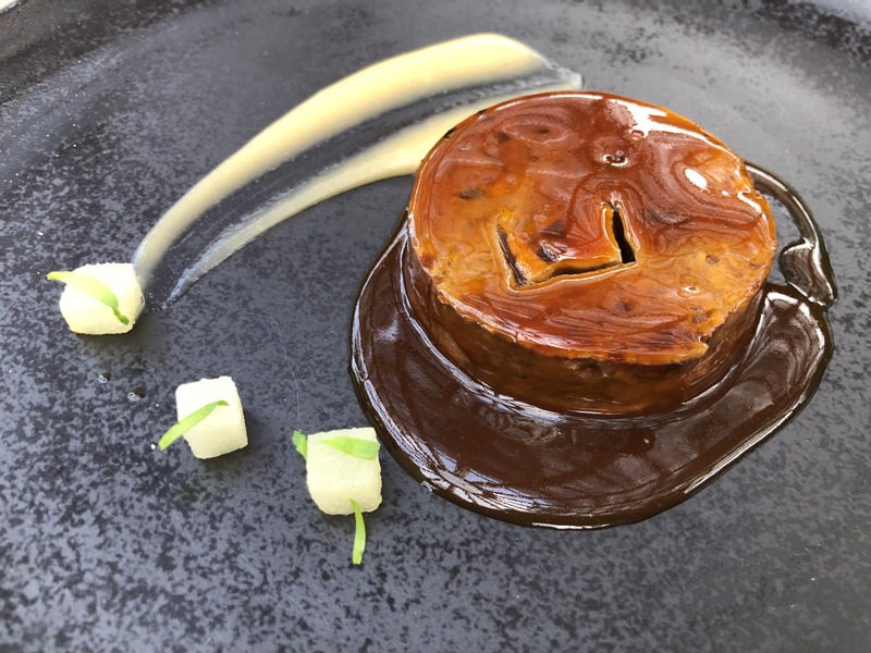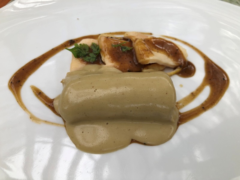 Canelón de pularda con salsa de foie, trufa negra y la pechuga a baja temperatura (2001)