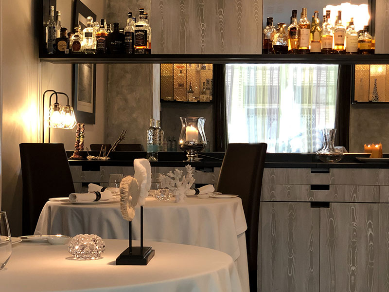 El restaurante está decorado con elegancia, sin estridencias decorativas, acompañados por un suave hilo musical de piano, dispone de pocas mesas, creo que unas ocho o diez como mucho, en cuanto al servicio de las camareras fue extremadamente atento y amable en todo momento, nos fueron describiendo todos los platos que nos sirvieron con detalle.