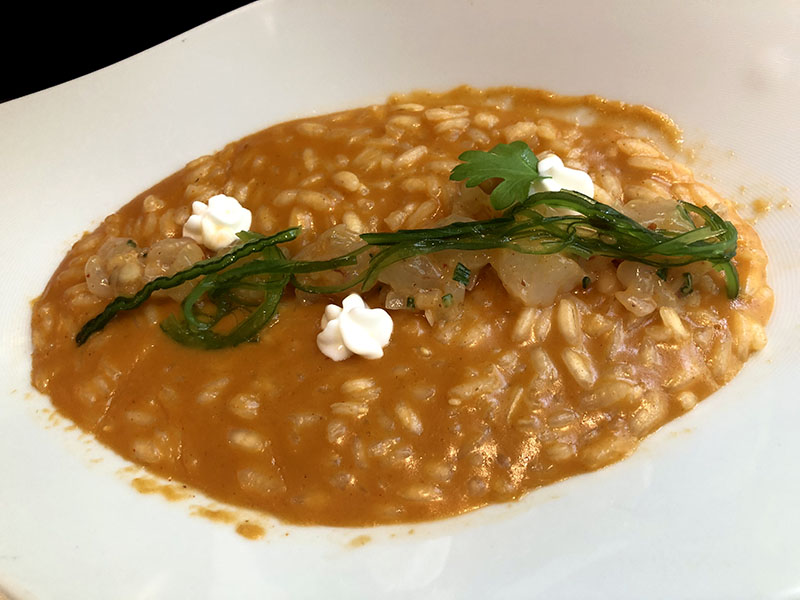 De entrantes teníamos un sabroso Mousse de caza y foie con gelée de Oporto y peta zetas que a mi esposa le encantó y un arroz meloso de crustáceos que estaba delicioso.