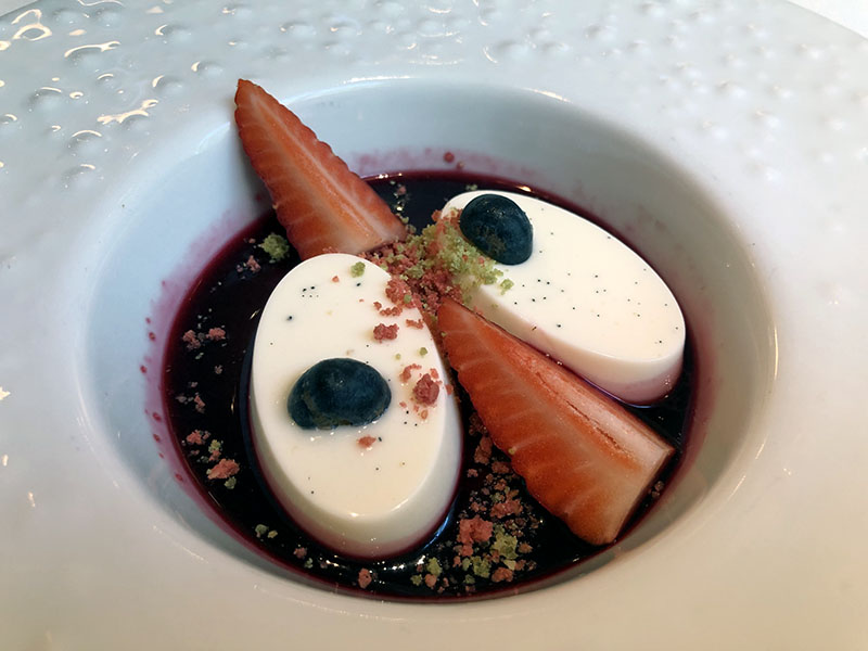 De postre una Panna cotta de vainilla con flor de hibisco, que estaba deliciosa