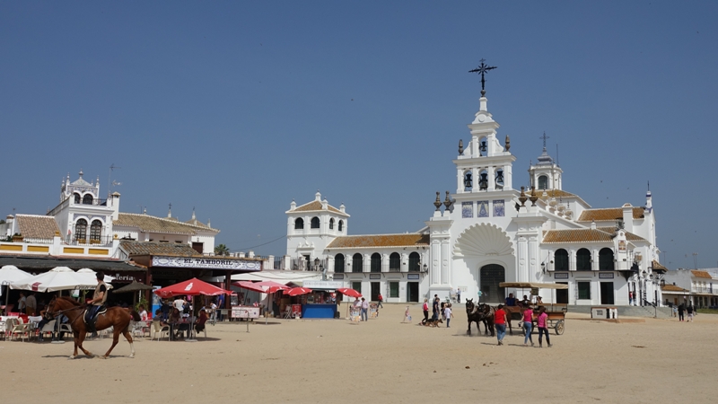 Salimos con el coche en dirección a nuestra primera visita matinal, el famoso pueblo de El Rocío, situado a unos 50 kilómetros de Moguer, la población normalmente tiene unos 1500 habitantes, pero durante la romería de la virgen puede alcanzar el millón de personas.