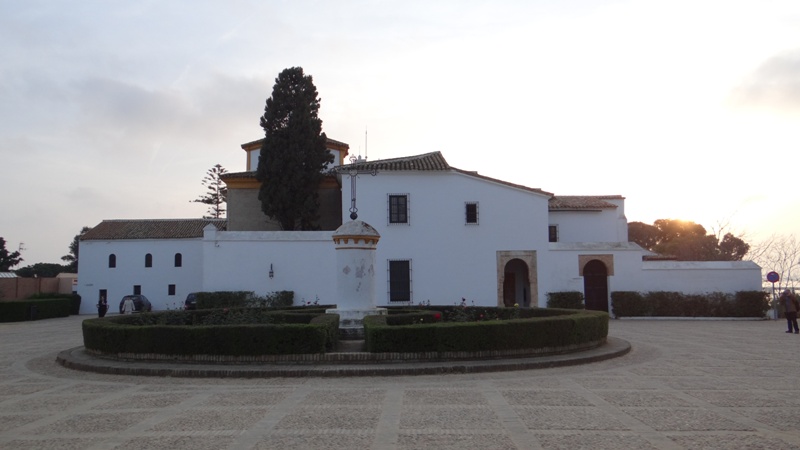 A unos 900 metros del museo de las carabelas se ubica el Monasterio franciscano de La Rábida, construido en el siglo XIV en estilo gótico-mudéjar, que también pudimos visitar tan solo su exterior, pues era demasiado tarde y también estaba cerrado, así que nos conformamos en visitar sus jardines y el Monumento a los Descubridores con las luces del atardecer.