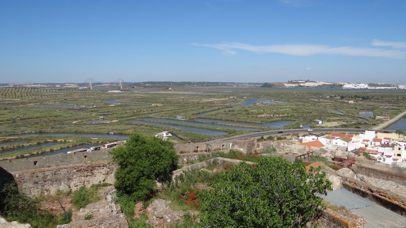Una vez llegamos a lo alto de sus murallas disfrutamos de unas excelentes vistas del río Guadiana y de las salinas con el puente Internacional del Guadiana al fondo, construido en 1991. El horario de visitas del castillo es de 9 a 17 horas de octubre a marzo y de 9 a 19 horas de abril a septiembre, la entrada es gratuita.
