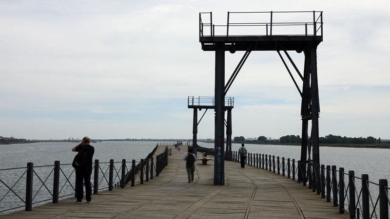 Tras la comida recorrimos el Muelle de la Compañía Rio Tinto, patrimonio y parte importante de la historia de la ciudad, fue construido en 1874 para la descarga de los minerales de la compañía Minas de Riotinto y clausurado en 1975, estando en servicio casi 100 años, en el año 2007 lo restauraron para el uso y disfrute de los ciudadanos de Huelva. Durante el paseo por su magnifica estructura nos adentrarnos siguiendo su gran pasarela en plena desembocadura del Río Odiel, a sido una gran idea la de mantener esta maravilla de la ingeniería.