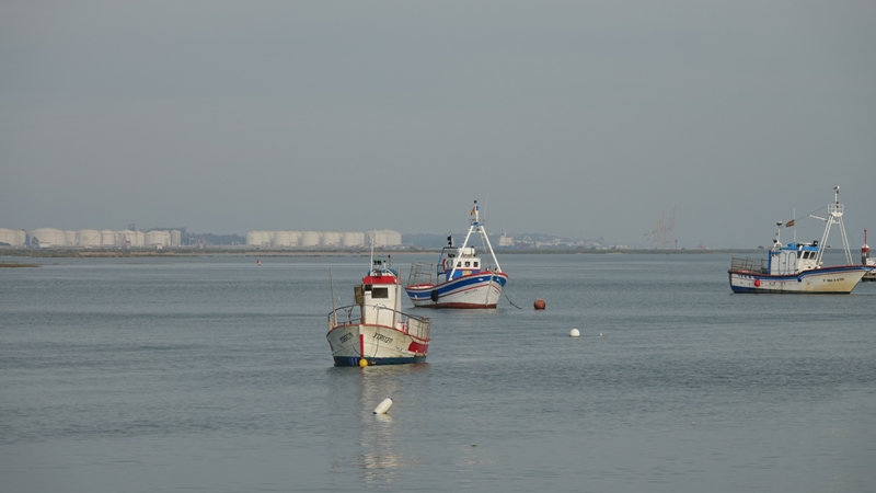 Nos conformamos con admirarlas desde la parte exterior del recinto y contemplar el paisaje que teníamos del Golfo de Cádiz desde el muelle.
