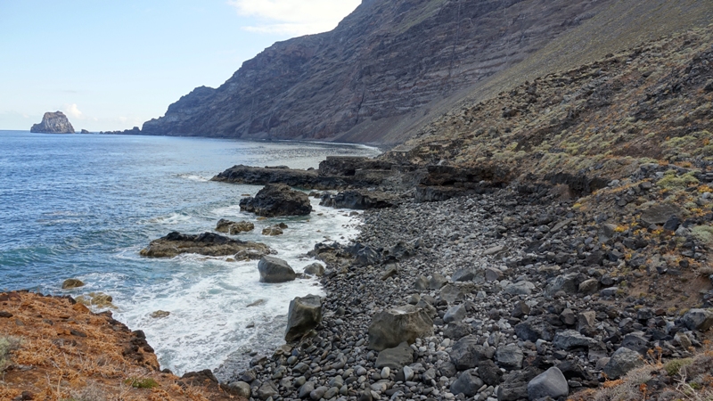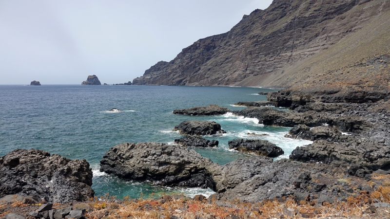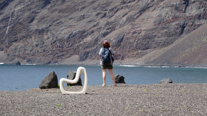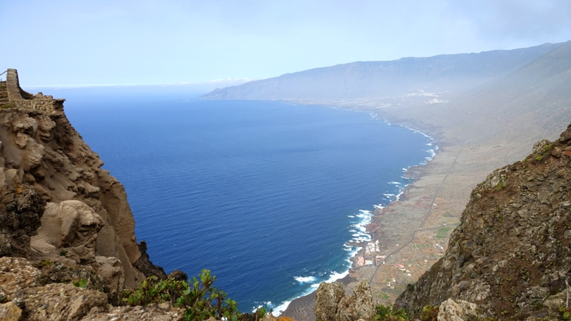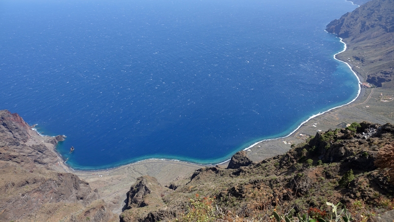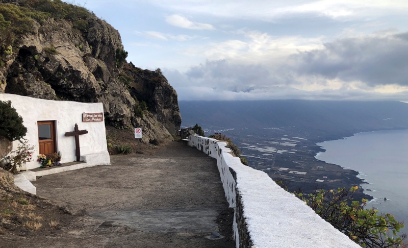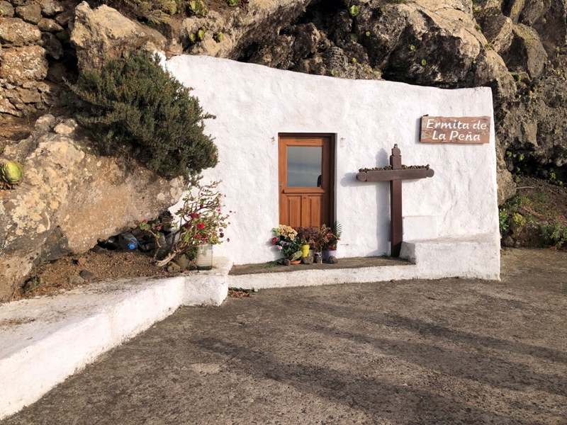 Desde la Ermita disfrutamos de otra vista distinta a la bahía del Golfo, según hemos leído, se construyó esta pequeña ermita para que La Virgen de La Peña protegiera a los caminantes que descendieran por este sendero, uno de los más peligrosos de la isla, actualmente está cerrado por su extrema peligrosidad.