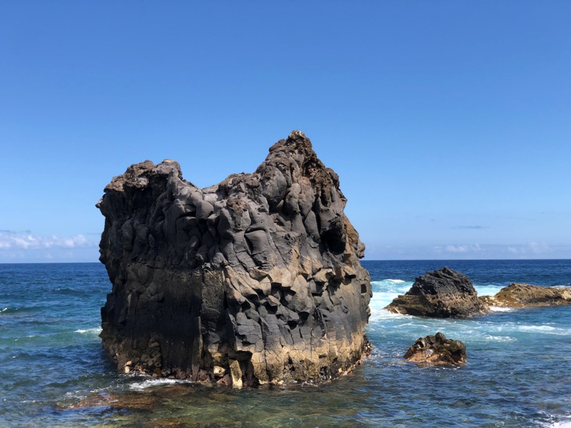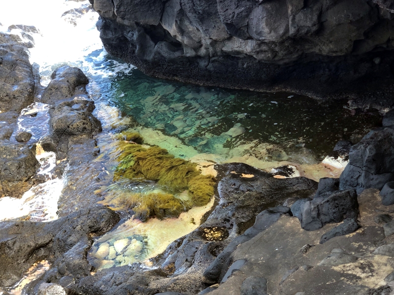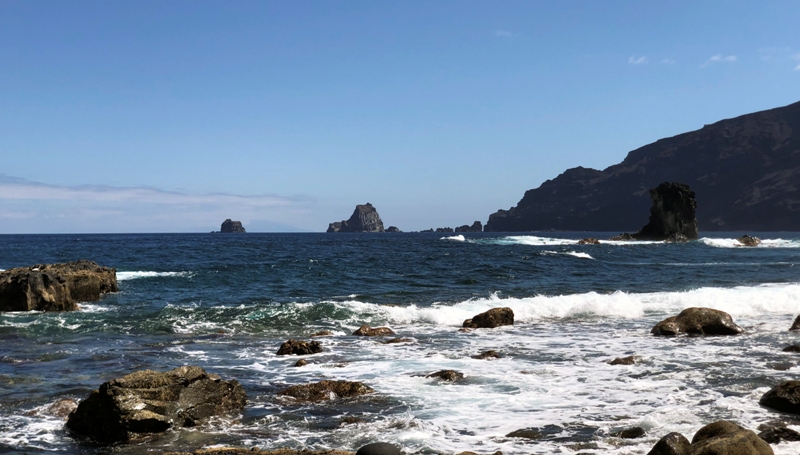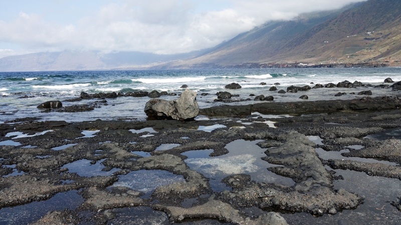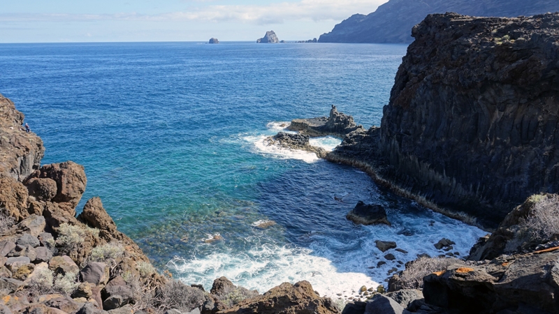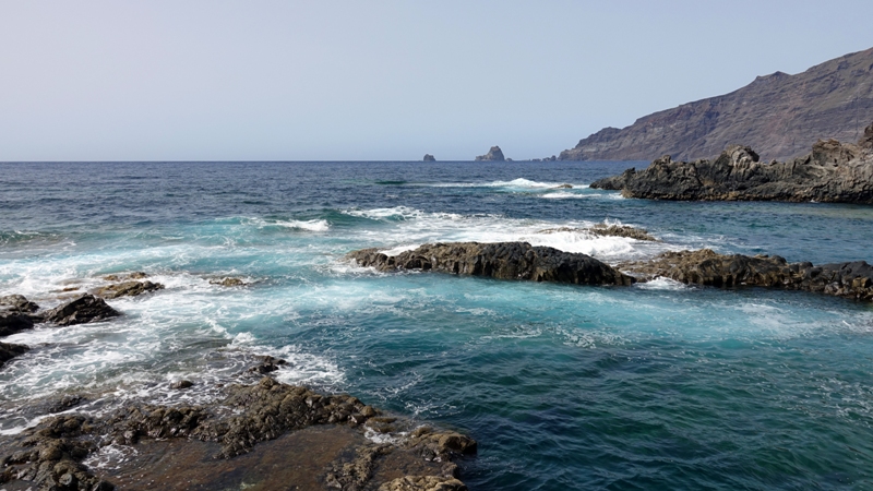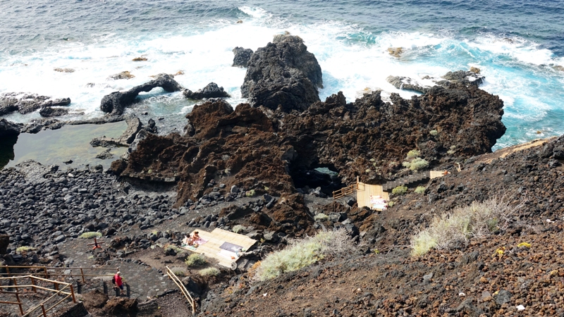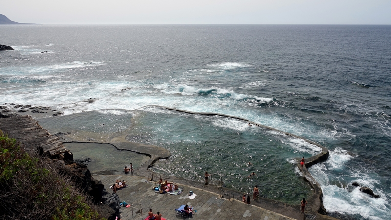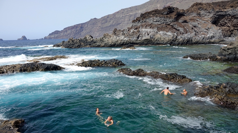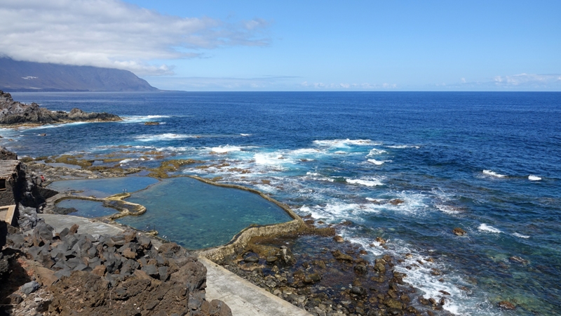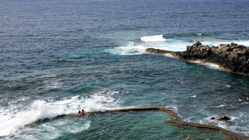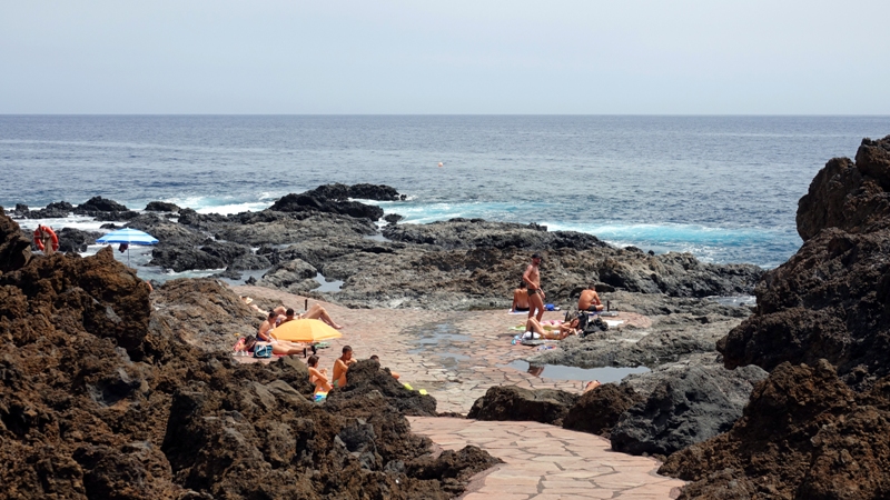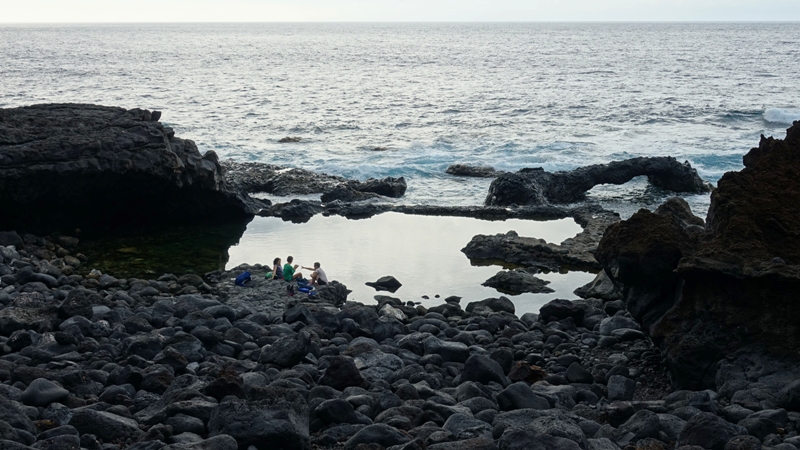 Nuestra intención era hacer un recorrido de toma de contacto con los llamados «charcos», empezando por el de La Maceta situado a apenas 5 kilómetros de las Puntas, dispone de tres piscinas naturales de diferente profundidad, dependiendo de la marea pueden incluso entrar las crestas de las olas a su interior, además las piscinas están repletas de peces de variados colores siendo un placer hacer esnórquel en sus tranquilas aguas, también disponen de zonas de picnic, duchas y aparcamiento .