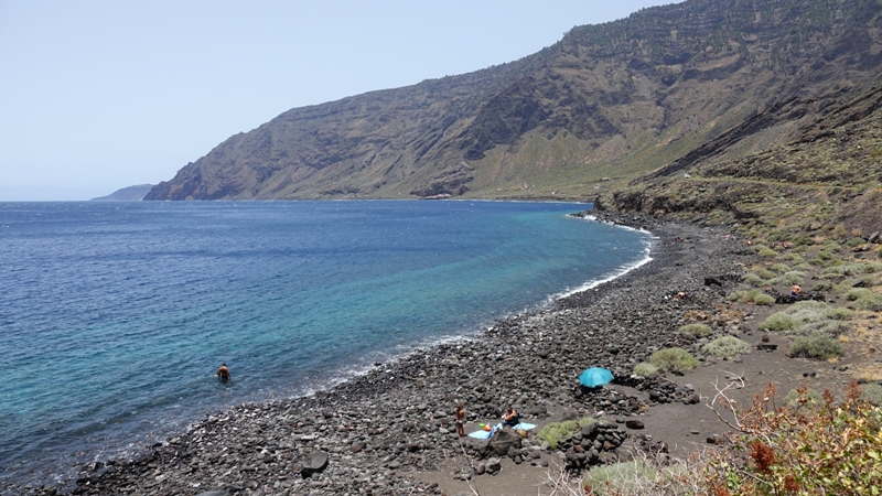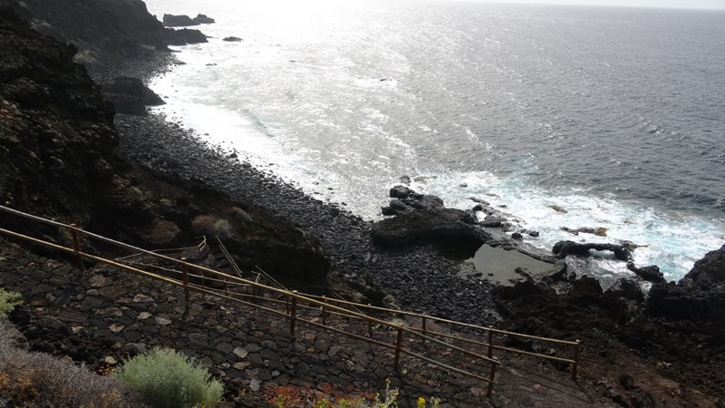 Aunque íbamos con la intención de bañarnos en esta playa, el mar estaba un poco alterado por lo que desistimos de bañarnos en ella, así que fuimos al Charco Azul para refrescarnos, que es según mi opinión, uno de los lugares más encantadores y tranquilos. Al final solo me bañe yo porque mi pareja decía que estaba el agua demasiado fría, yo la noté al estilo de la Costa Brava en Girona, hablando con otro turista me decía que él la notaba a una temperatura estupenda, le pregunté de donde era y me dijo de Galicia, lógico que la encontrara hasta caliente, todavía recuerdo cuando me bañé hace unos años atrás en las Islas Cíes, al entrar al mar parecía que el agua me cortara las piernas de fría que estaba.