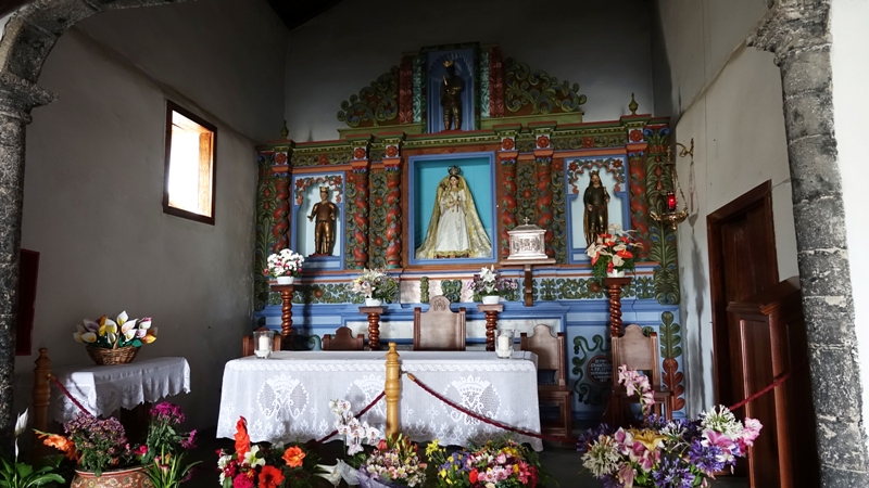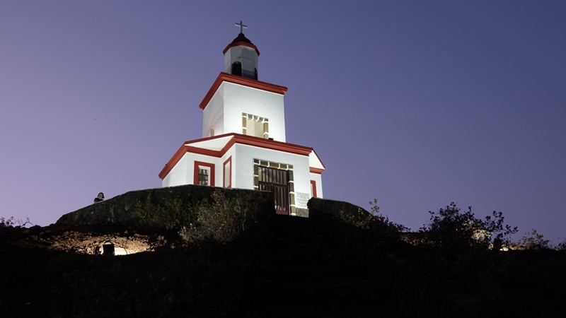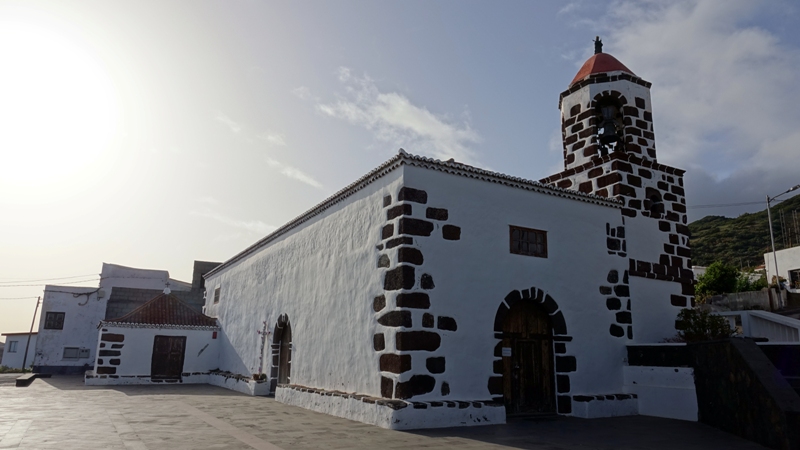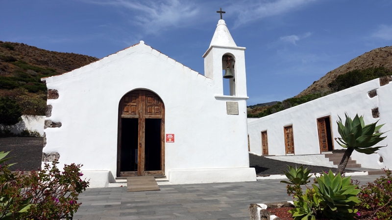 La Ermita de Nuestra Señora de los Reyes, está situada en Parque Natural de La Dehesa, siendo la más importante de la isla pues es donde se venera la patrona de El Hierro, fue construida en el siglo XVI y restaurada en el siglo XVIII. Por suerte pudimos visitar su interior a pesar de las restricciones, en aquel momento hacia un sol espectacular, lo que hacía resaltar el blanco intenso de sus paredes encaladas que contrastaba con el paisaje.