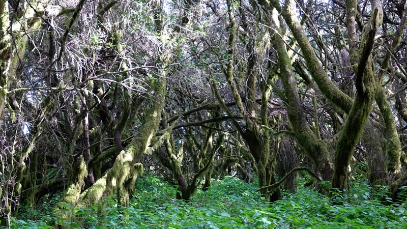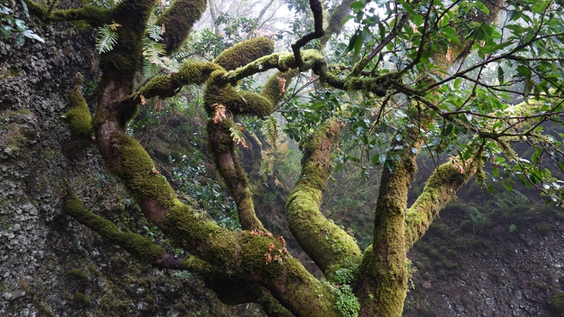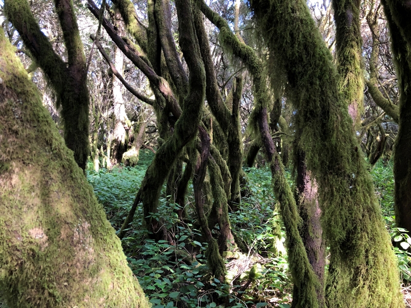 Encontrándonos en el transcurso del camino un bosque de árboles del Agua, que recogen la humedad que llevan los vientos alisios, en sus hojas dejándola caer como si fuera lluvia, fue una experiencia realmente mística.