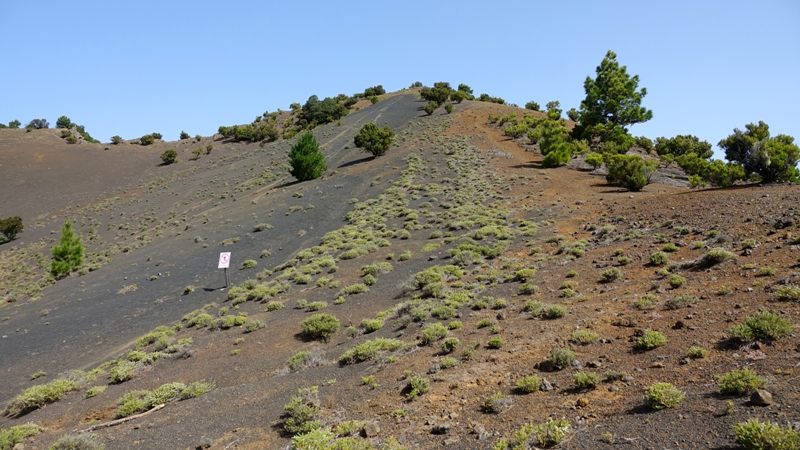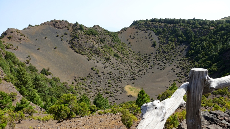 Ascendimos hasta el mirador de la Hoya de Fireba, un cono volcánico situado a 1330 metros de altitud, siguiendo el sendero marcado que cruza el Bailadero de las Brujas, donde cuenta la leyenda realizaban sus aquelarres las brujas.