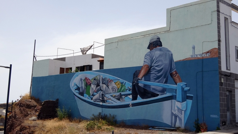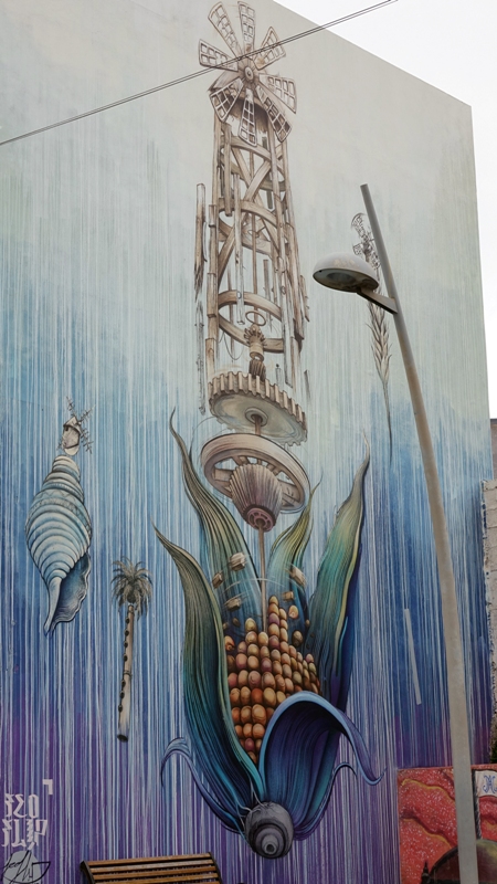Tras la comida hicimos unas fotos de la Iglesia de San Antonio Abad y un pequeño recorrido por sus calles, viendo varios grafitis gigantescos muy bien realizados, el inconveniente es que las calles son muy inclinadas, estilo San Francisco, lo que no anima el paseo por la población.