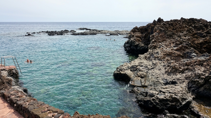 En este caso la población dispone de tres piscinas construidas con variadas profundidades aptas para todos los públicos y llenas de agua de mar, pero no son naturales de roca volcánica como las anteriores, también hay la posibilidad de bañarse directamente en el mar a través de unas escaleras fijadas en la roca.