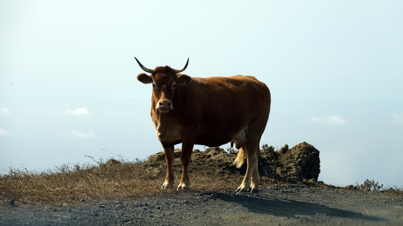 Finalizamos las visitas del día dirigiéndonos al Faro y el Muelle Orchilla, situados a una media hora del Mirador de Bascos, como anécdota, nos sucedió que al tomar la pista de tierra que salía del sabinar nos encontramos con unas vacas muy tozudas que nos impedían el paso, sobretodo una de color negro que daba muy mal rollo, pero con paciencia pudimos pasar lentamente por su lado esquivándolas para seguir nuestro camino.