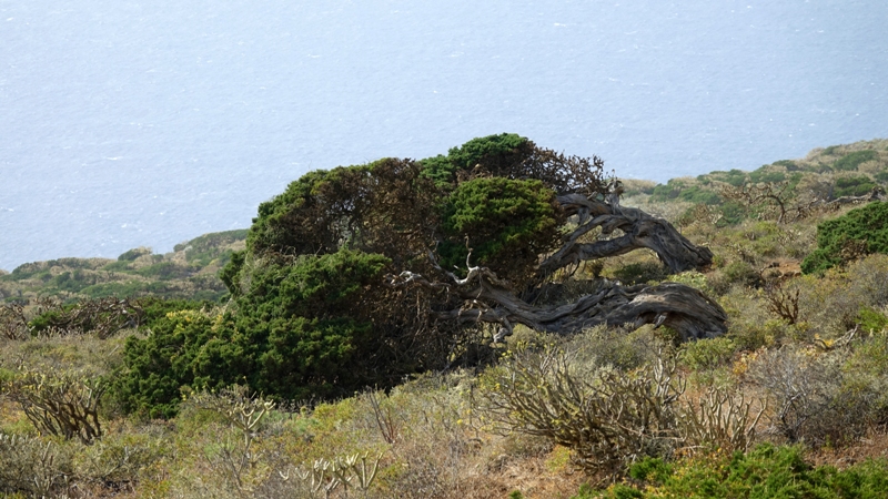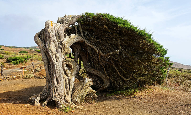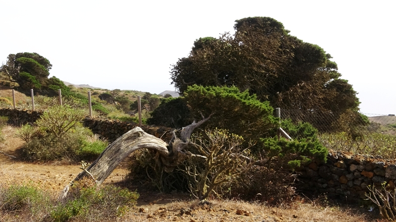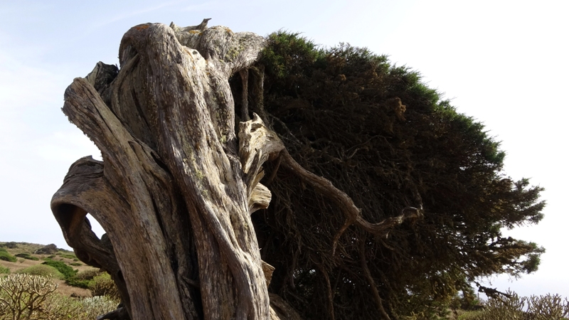 Tomamos con el coche una pista forestal que nos llevó hasta el instagrameado, El Sabinar, con sus sabinas tumbadas por el viento, no me extraña, pues es una zona muy agreste donde sopla el fuerte viento constantemente.
