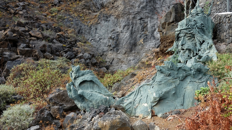 Al final de la rampa pudimos observar el Neptuno reinventado obra de Rubén Armiche. Una vez en la parte baja, paseamos por sus callejuelas y recorrimos las orillas de las piscinas naturales. He de reconocer que es un lugar que impresiona, tanto sus vistas desde la parte más alta como cuando estas en la orilla y miras hacia el escarpado acantilado.