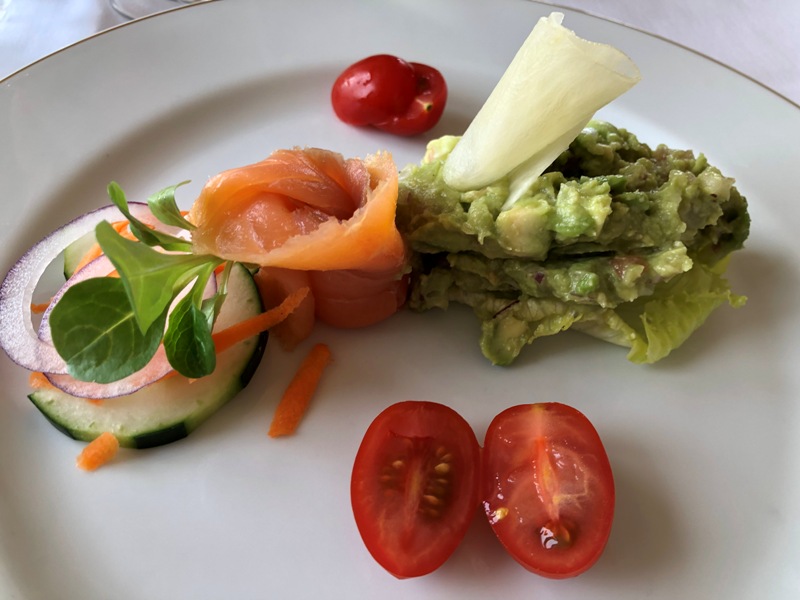 Comimos excelentemente, en esta ocasión elegimos unas refrescantes ensaladas de aguacate, tomate canario, berros y salmón ahumado y de segundos, vieja a la plancha y bacalao con verduras, un restaurante muy recomendable a un precio muy correcto y en un entorno ideal. También es uno de los lugares que aparece varias veces en la serie Hierro.